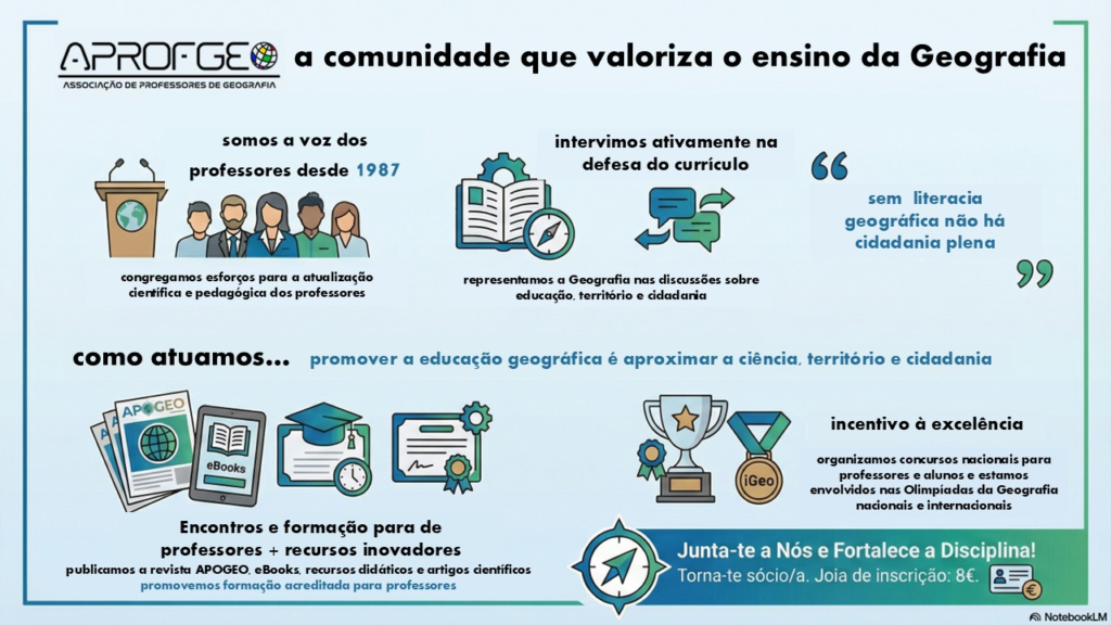 Contamos consigo para continuar a fazer crescer a Comunidade dos professores de Geografia, fortalecendo a APROFGEO e valorizando o papel da Educação Geográfica em Portugal.