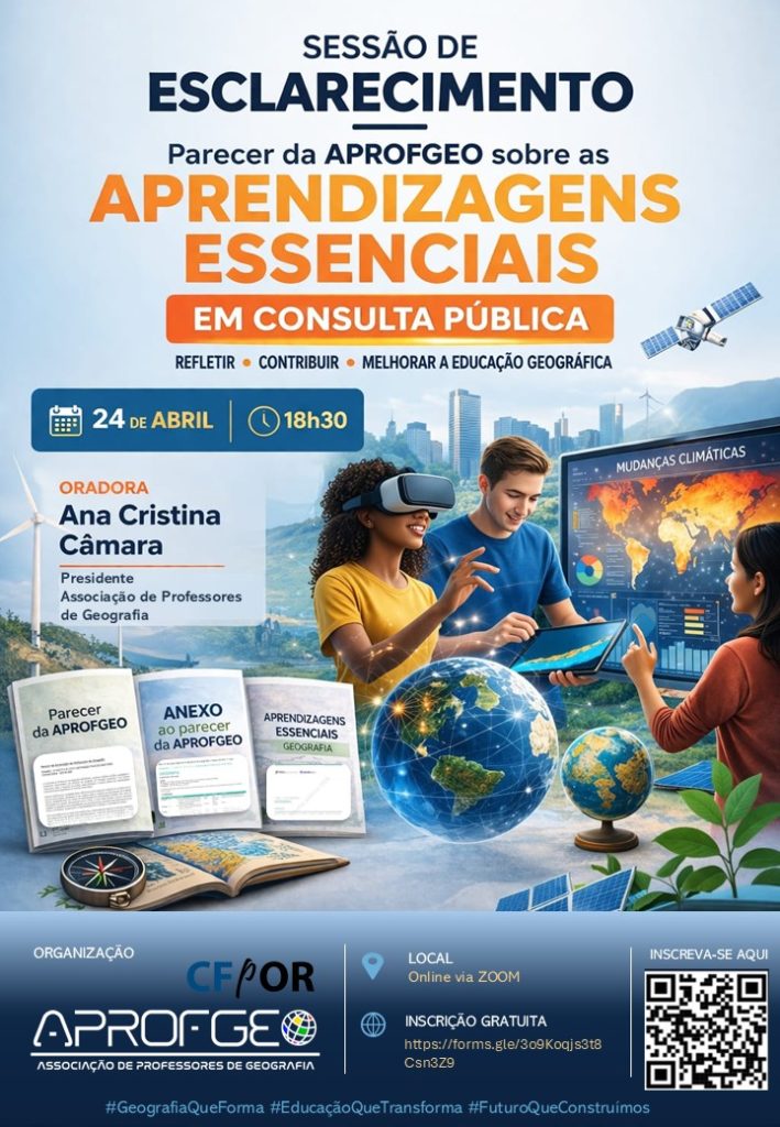 A Associação de Professores de Geografia promove uma sessão de esclarecimento dedicada à revisão das Aprendizagens Essenciais de Geografia, atualmente em consulta pública até ao próximo dia 28 de abril.